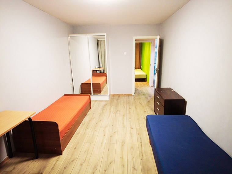 Раздельные комнаты, в каждой из которых есть балкон, совмещённый санузел с душевой кабиной и стиральной машиной. Компактная кухня оборудована электрической плитой, холодильником и микроволновкой. Установлены пластиковые окна, закрытый подъезд — всё для вашей безопасности и комфорта!